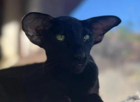Barang Kemas Omina ZieZogeb: 24-07-2022kleur: oosters korthaar ebonyDraagt verdunning en siameesPRA: N/N (ouders)Vader: Onyx van PartouMoeder: Barang Kemas blue Muu Sky
